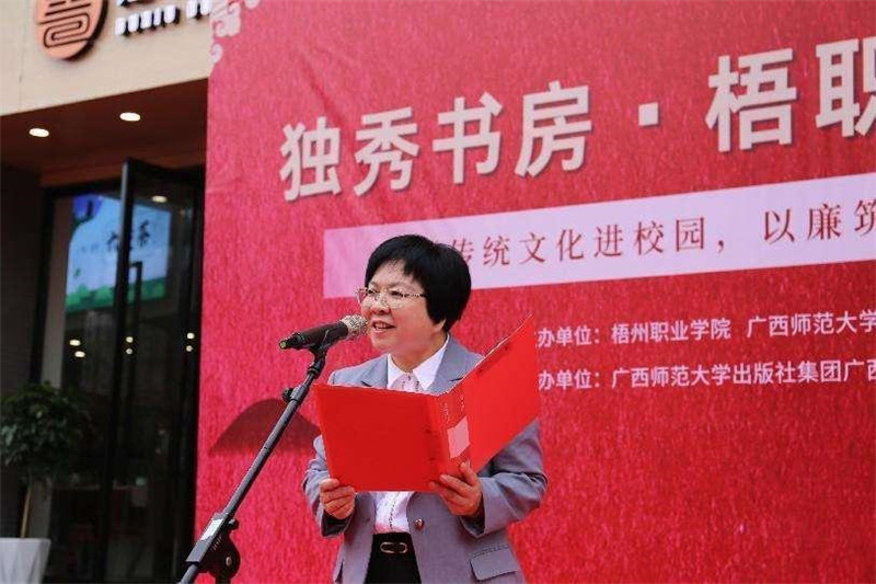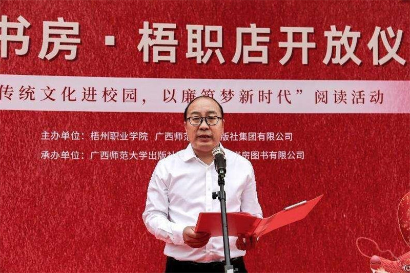 3月17日,出版社集团独秀书房·梧职店开放仪式暨“传统文化进校园,以廉筑梦新时代”阅读活动在梧州职业学院举办,标志着由梧州职业学院与出版社集团共建的独秀书房·梧职店对外开放。梧州职业学院党委书记时伟,党委副书记、纪委书记赖浪涛,副院长姚冰以及相关出版社集团领导等领导嘉宾出席书房的开放仪式,并与现场师生代表共赴一场精彩纷呈的传统文化盛宴。