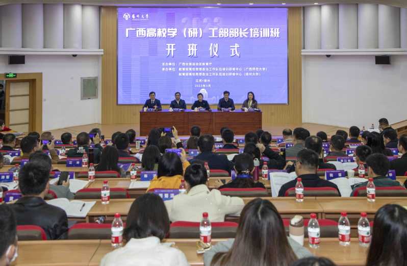 近期,广西高校学(研)工部部长培训班在扬州大学荷花池校区举行。本次培训班由教育部高校思想政治工作队伍培训研修中心(扬州大学)主办,教育部高校思想政治工作队伍培训研修中心(广西师范大学)承办。扬州大学党委常委、副校长蔡颖蔚,教育部高校思想政治工作队伍培训研修中心(扬州大学)主任叶柏森、江苏省教育厅高校学生处处长许正亚、广西师范大学学生工作部(处)部(处)长等出席开班仪式,来自广西高校的84名学工部部长、研工部部长参加培训。
