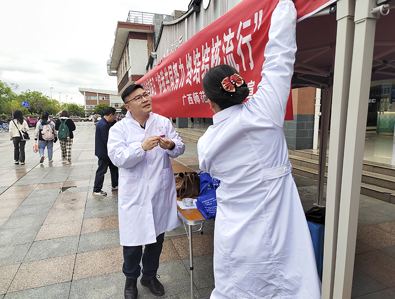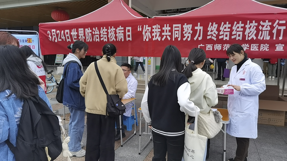 2023年3月24日是第28个世界防治结核病日,今年的宣传主题是“你我共同努力,终结结核流行”。为扎实做好防治结核病日宣传教育工作,促进师生树牢“自身健康第一责任人”意识。校医院联合校红十字会在雁山校区开展了结核病防治宣传进校园活动。