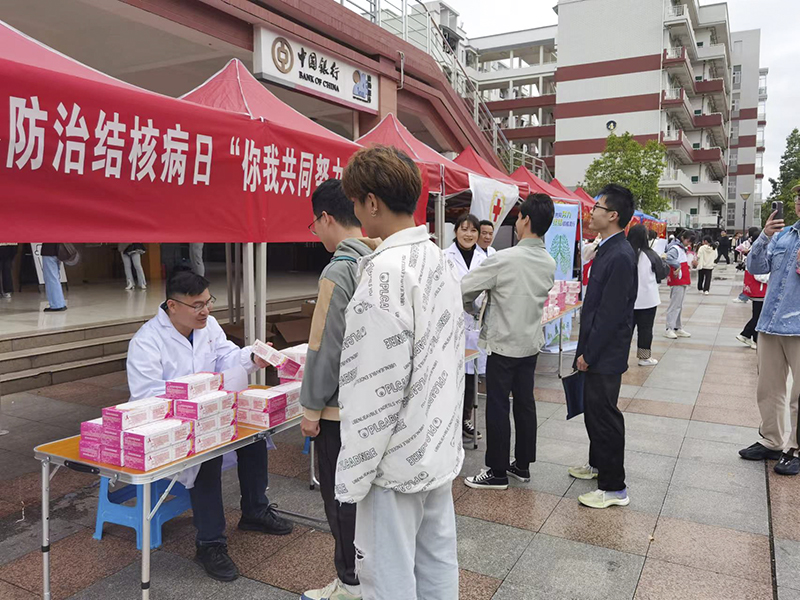 活动现场,通过悬挂横幅、海报、派发宣传资料等方式向师生宣教结核病防治知识。医护人员用通俗易懂的语言向同学们讲解结核病的临床症状、传播途径、预防方法等相关知识,并提醒广大师生养成良好的卫生习惯。活动中还开展有奖问答,现场气氛热烈,同学们踊跃回答问题。在这种有趣、轻松的氛围中,引导同学们提高了个人健康意识,增进同学们对结核病防治知识的了解和掌握。