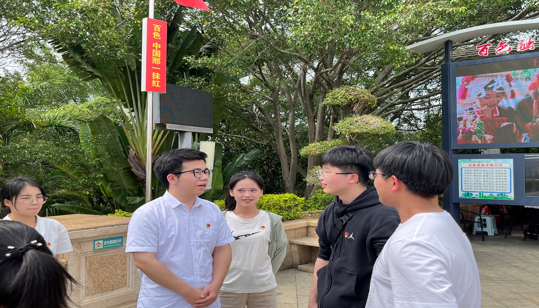 在百色学院文传学院党员同志的带领下,双方先后参观了百色起义纪念馆、红军桥、百色起义纪念碑等革命圣地;在纪念碑下,全体党员同志向革命先烈默哀致敬,并开展了红色主题教育学习分享会。