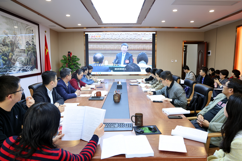 学院行政主要负责人领学了习近平总书记在第十四届全国人民代表大会第一次会议上的重要讲话精神,并结合推动全国重点马院高质量发展谈学习体会。她指出,全院党员干部、教职员工要发挥主人翁精神,聚焦“强院兴校”目标统筹各项工作,着力从学科建设、教学改革、青年教师成长、教师队伍建设等四个方面加强内涵建设,推动学院高质量发展。