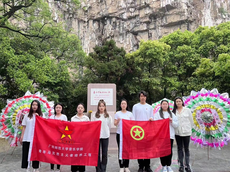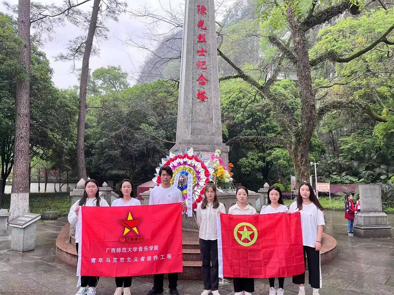陈光烈士墓、张曙烈士墓园,音乐学院青马班学员自发开展系列清明祭扫活动。纪念碑前,松柏低垂,庄严肃穆。同学们怀着无比崇敬的心情,鞠躬默哀,敬献花束,表达对革命先烈的敬仰和怀念之情。学生代表在先烈墓前发出号召,希望同学们坚定理想信念,牢记初心使命,务实团结进取,以告慰烈士英魂,寄托无限哀思。同学们纷纷表示要将先烈们坚如磐石的理想信念、百折不挠的英雄事迹作为一脉相承的红色基因,赓续红色精神血脉。立足所学专业,书写人生青春华章,发出“请党放心,强国有我”的时代最强音。