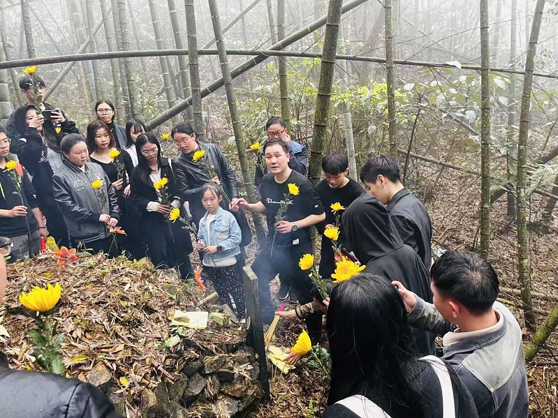 清明寄哀思,祭扫慰忠魂。4月2日,音乐学院师生党员代表赴桂林资源县猴背村,为开展“承续英烈奋斗之志·汲取乡村振兴力量”主题微党课。在红军烈士墓碑前,全体师生党员手持菊花、神情肃穆,向烈士墓深深鞠躬,默哀三分钟,深切缅怀革命先烈。红军烈士墓与青山融为一体,以山为灵、以木为魂、以石为碑,青山埋忠骨,英灵得慰藉。学院党委相关负责人为现场师生带来“缅怀革命先烈,赓续红色血脉”微党课,重温红军长征时的艰辛情景,将党课课堂搬到英烈的足迹里,现场师生仿佛回到了当年红色峥嵘的岁月,感受着红军突破湘江的残酷和血与火的悲壮,对当年红军战士坚定的信念和百折不挠、坚毅勇敢、不怕牺牲的品格深深敬仰。