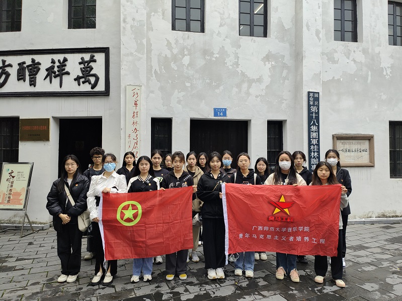 学院青马学员前往龙胜各族自治县红军岩、桂林八路军办事处参观学习。学员们认真倾听讲解、仔细记录,从一幅幅生动的图片、一件件珍贵的文物、一段段激动人心的革命史中了解广西红色文化的发展历程,真切感受革命精神的底蕴沉淀。红军岩上“红军绝对保护瑶民”军民一家亲标语,纪念馆中先烈们的日记、军功章、贴身的怀表、作战使用的望远镜……这些深深地激荡着同学们的心灵,让他们再次深切感受到了革命先烈们坚定不移的政治信念、艰苦奋斗的优良作风和英勇无畏的革命精神。