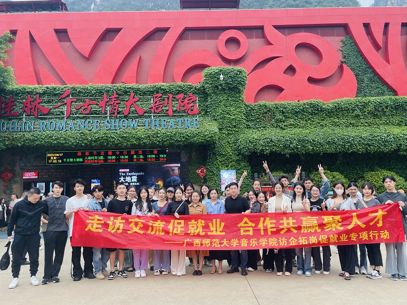 为深入贯彻落实党中央、国务院关于“稳就业、促就业”的决策部署,全面落实教育部“访企拓岗促就业”专项行动,响应学校“用人单位大走访 全员联动促就业”的号召,音乐学院抢抓春招关键期,努力开拓就业空间,4月18日,由音乐学院党委相关负责人牵头,学院学工团队带领35名舞蹈学毕业生赴宋城演艺集团桂林千古情剧场开展校企合作交流,现场推荐毕业生。宋城演艺集团相关负责人参加本次专项活动。