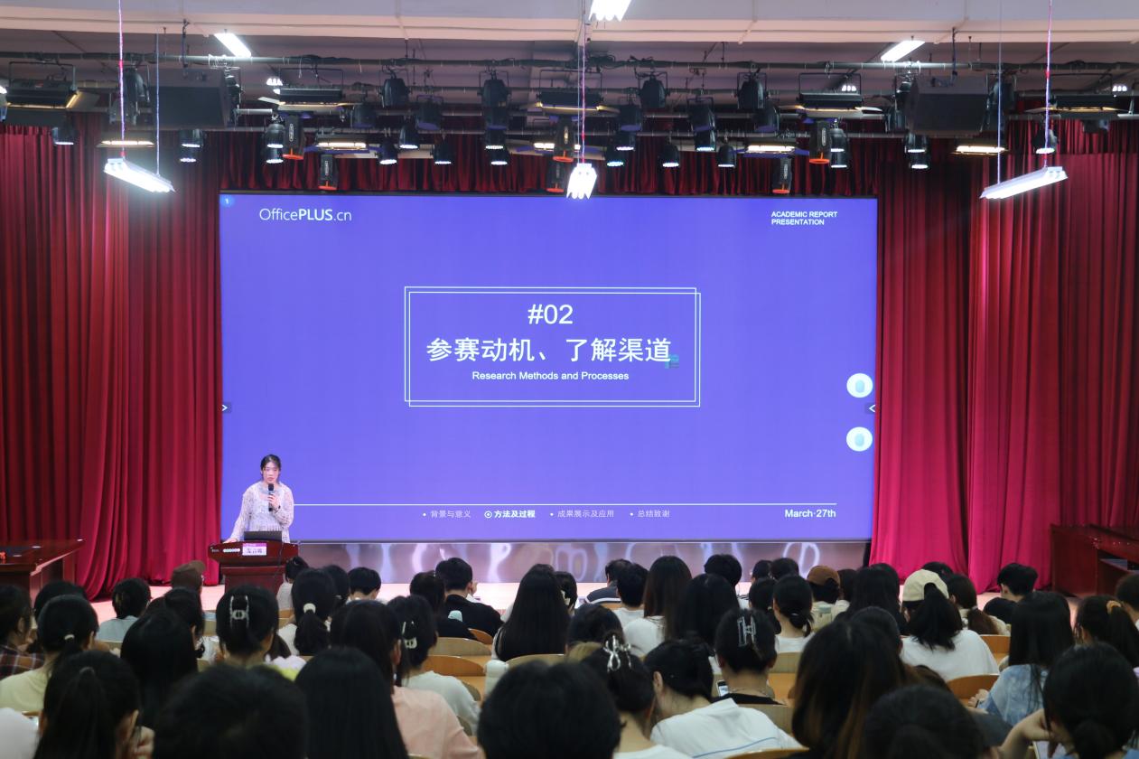 随后,学院往届“互联网+”大赛获奖项目成员本科2019级秘书学郭蓉蓉、2020级秘书学陈晟,分别做了经验分享。两位同学将参赛的感受、以及自身成长分享给各位到场同学,希望同学们能投身大赛、了解大赛,提升自我,扩大自己的视野。