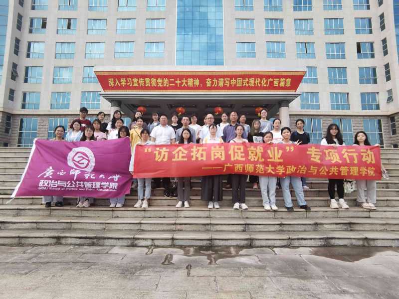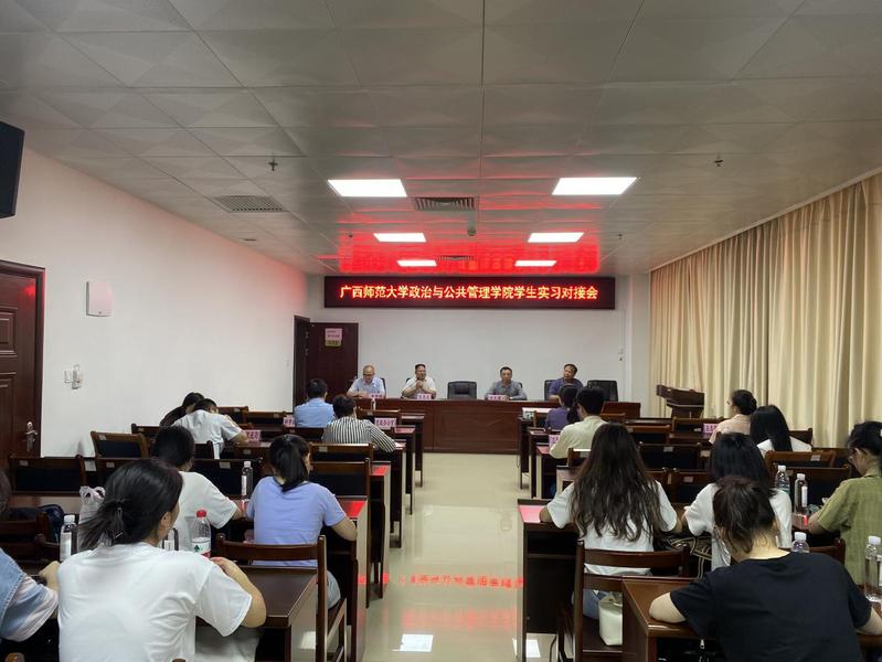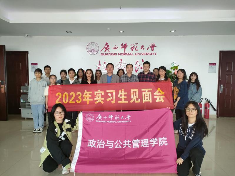 为进一步推动学生专业实习工作,落实“共青团大学生就业引航计划”专项行动,加强政企校联系,5月4日至8日,广西师范大学政治与公共管理学院2020级本科生在学院党委主要负责人、相关负责人,学院行政相关负责人等领导老师的带领下分赴桂林、柳州、来宾等地开展专业实习并开展实习对接会,各实习单位负责人热情接待老师同学们的到来。