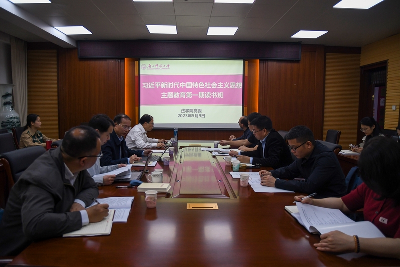 为深入学习宣传贯彻党的二十大精神,推动习近平新时代中国特色社会主义思想主题教育工作走深走实,5月9日上午,法学院党委在雁山校区375会议室召开学习贯彻习近平新时代中国特色社会主义思想主题教育第一期读书班暨党委理论学习中心组(扩大)会议。学院领导班子成员、院长助理、办公室主任、分团委书记、党支部书记、组织员参加会议,会议由学院党委主要负责人主持。