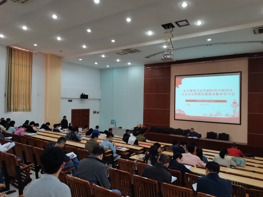 附属中学党委主要负责人指出,根据广西师范大学党委工作部署和附属中学工作实际,全体党员要牢记“学思想、强党性、重实践、建新功”总要求,坚持学思用贯通、知信行统一,把习近平新时代中国特色社会主义思想转化为坚定理想、锤炼党性和指导实践、推动工作的强大力量,使全校党员、干部始终保持统一思想、坚定的意志、协调的行动、强大的战斗力,努力在以学铸魂、以学增智、以学正风、以学促干方面取得实实在在的成效。坚持目标导向和问题导向相统一,着力解决“理论学习、政治素质、能力本领、担当作为、工作作风、廉洁自律”6个方面突出问题。他还就党的纪律要求进行集中学习。他强调,全体党员要严明政治纪律,严守政治规矩,严于律己,以身作则。