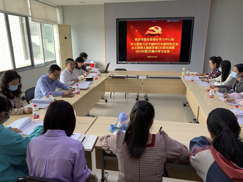 5月13日,教育学部党委在雁山校区行北345举行学习贯彻习近平新时代中国特色社会主义思想主题教育第二期读书班暨学部党委理论学习中心组(扩大)第二次集中学习会议。此次学习由学部党委主要负责人主持,分两阶段进行,学部党委委员和各党支部书记参加学习。