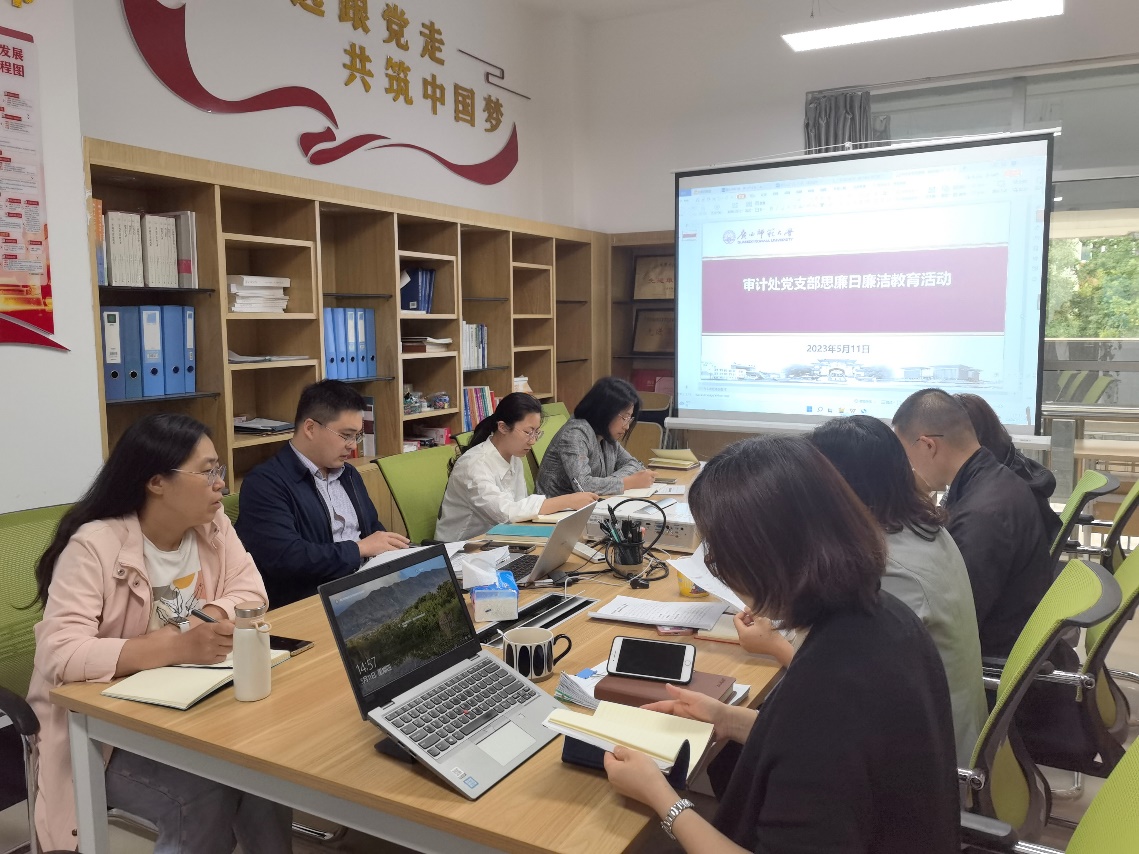 同时,结合学校“5·10”思廉日活动主题,支部纪检统战委员围绕“铸牢清廉根基、涵养廉洁力量”主题带领全处干部进行廉洁教育学习,传达《广西师范大学2023年纪律教育实施方案》并对下一步纪律和廉洁教育活动作了安排。支部书记以“领导干部家风建设”为题,从家风建设的重要性紧迫性到家风建设的可行路径,强调全体干部要树立优良的家风,滋养清正廉洁的作风,作出良好的表率,保持审计工作始终风清气正。