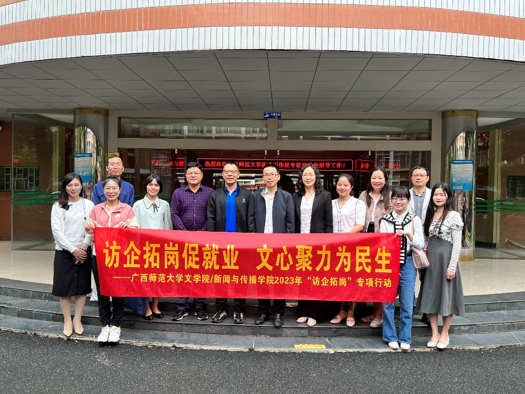 为深入学习习近平总书记关于就业工作的重要指示精神,贯彻落实教育部关于“访企拓岗促就业专项行动”工作部署,协同推进就业育人工作,进一步加强校企在人才培养、平台共建等方面的合作,5月11日-12日,文学院/新闻与传播学院学生工作负责人,学院副院长,学工办主任以及教育学部学生工作负责人等前往南宁开展“访企拓岗”、人才培养与毕业生就业、校企合作座谈会,各单位相关负责人和文学院/新闻与传播学院毕业生代表参加座谈。