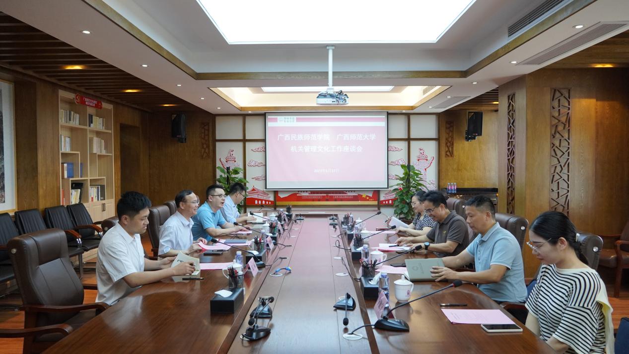 5月17日,广西民族师范学院党委常委、统战部部长、党委(校长)办公室主任韦茂斌一行4人到我校考察交流。校党委常委、统战部部长、机关党委书记黄海波主持有关活动。双方就我校机关管理文化工作经验做法等方面进行了实地考察和深入交流。