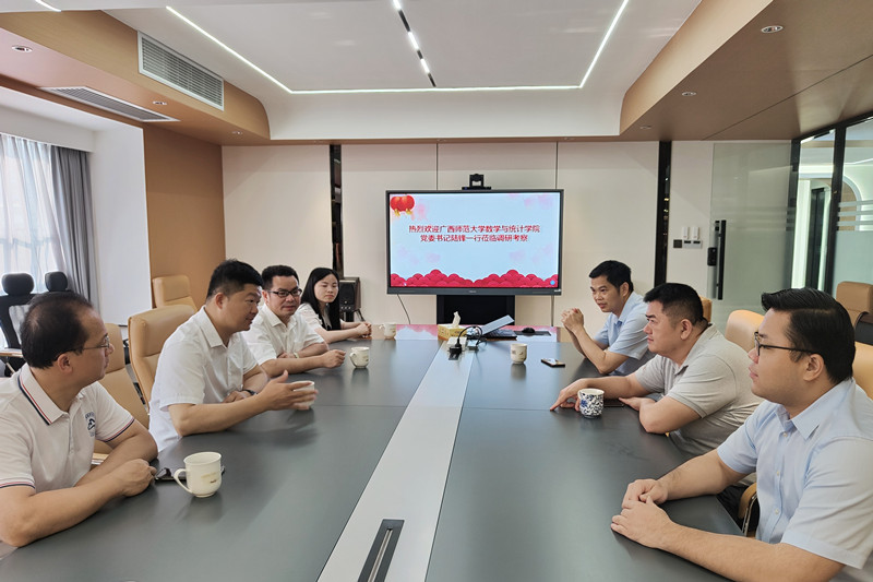 校党委常委、副校长黄文韬,数学与统计学院党委负责人、行政相关负责人、专任教师和辅导员代表一行人先后走访了桂平市时克运动休闲服饰有限公司、桂平市中健运动休闲服饰有限公司、广西华普科技投资有限公司、桂平市浔州高中、桂平市第一中学、桂平市第三中学、贵港市贵糖高级中学、贵港市达开高级中学等企业或中学,就招聘与就业、人才培养、校企合作、校际合作等内容开展深入交流,搭建校企、校际交流合作平台,深化学校和用人单位的供需对接。
