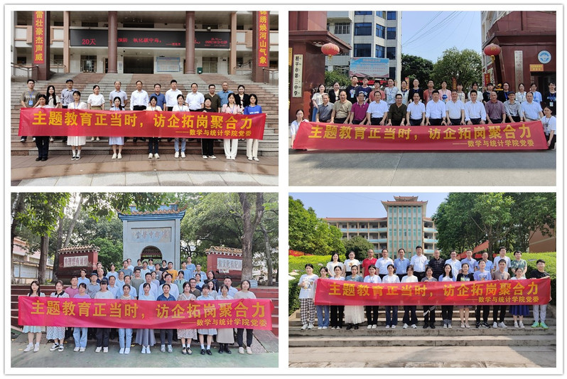 为深入开展学习贯彻习近平新时代中国特色社会主义思想主题教育,把主题教育同做好高校毕业生就业工作紧密结合起来,紧抓就业工作关键期、黄金期,切实把学习、调研成果转化为实际行动,大力拓展高校毕业生就业渠道,加快推动高校毕业生就业工作。5月17日至19日,数学与统计学院赴贵港市、桂平市看望实习生,并开展访企拓岗专项行动。