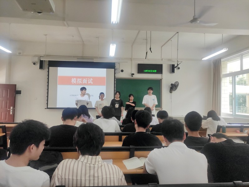 为深入推进“我为青年办实事”实践活动,助力毕业生高质量充分就业,计算机学院于5月24日在理科楼三区217教室举办模拟面试活动。学院党委相关负责人、桂林科技创业服务中心副主任唐晓娇、桂林移远通信技术有限公司招聘经理何云、桂林移远通信技术有限公司招聘专员甘丽媚、年级辅导员担任面试官,共有80余名学生参与模拟面试活动。