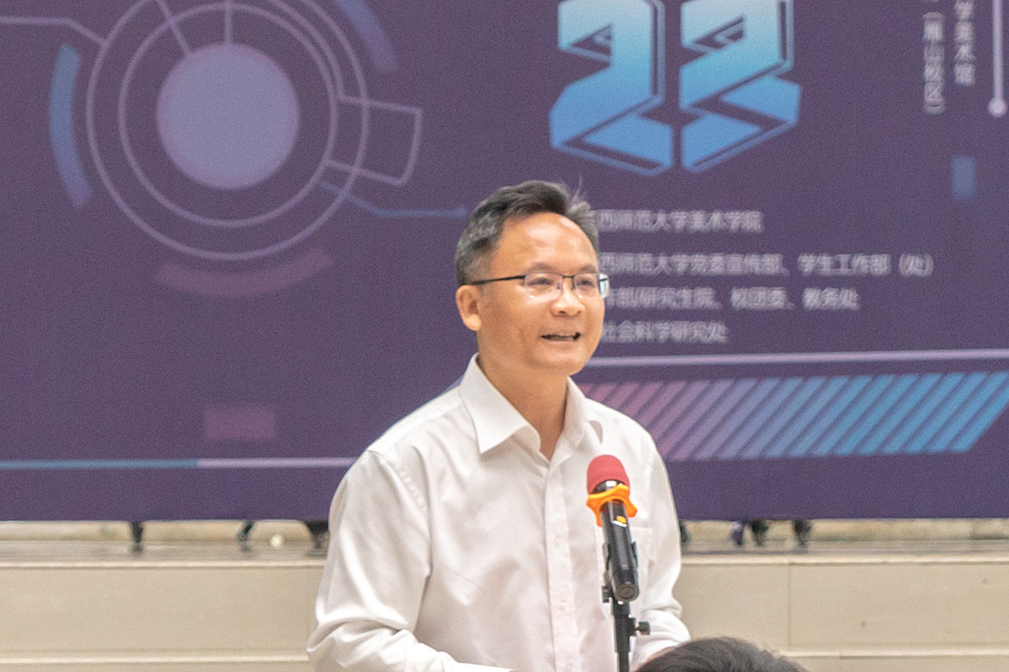 5月22日,美术学院2023届本科、硕士研究生毕业作品展(本科绘画专业、硕士研究生专场)在广西师范大学美术馆、纯道美术展厅举办,这一阶段展览集中陈列了2023届研究生和绘画专业本科生的作品170余件。广西师范大学副校长林春逸参加开幕式并致辞,广西师范大学原副校长白晓军、桂林美术馆负责人、广西艺术学院、桂林旅游学院设计学院、桂林学院设计学院相关负责人、学校相关职能部门负责人、设计学院、职业技术师范学院相关负责人,美术学院领导班子及学院师生代表参加本次展览开幕式。