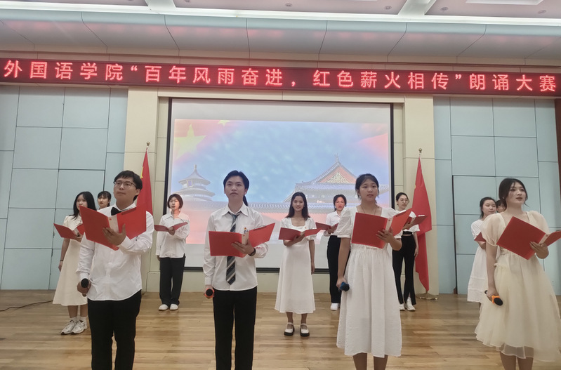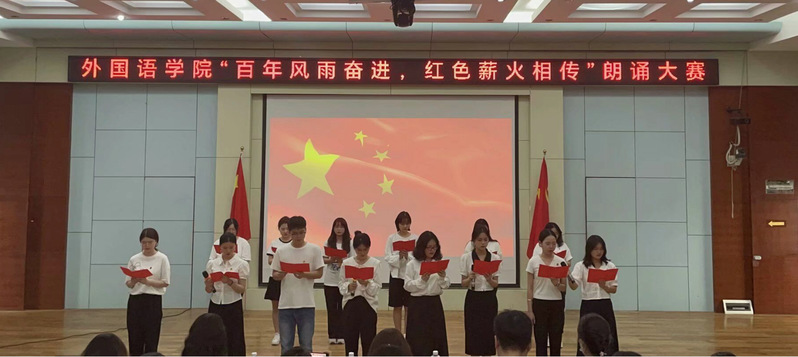 5月21日,外国语学院分党校组织第三十八期入党积极分子培训班学员在雁山校区大学生学术报告厅开展“百年风雨奋进,红色薪火相传”朗诵大赛。本次朗诵大赛有18个小组,共计240余人参加。