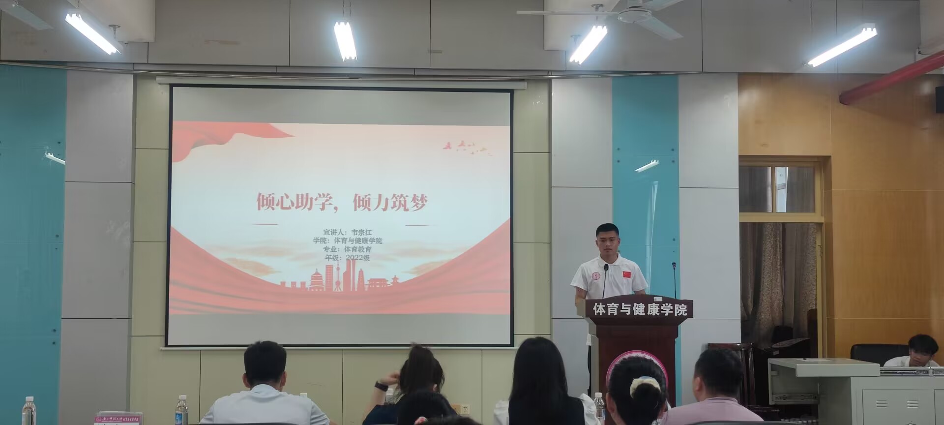 为进一步加大学生资助政策宣传力度,全面展示国家资助政策落实成效,加强对受奖助学生的励志感恩教育,结合我校2023年“学生资助政策宣传月”活动要求,体育与健康学院于2023年5月21日在体育楼503会议室开展“我为资助代言”学生资助宣传大使评选活动。