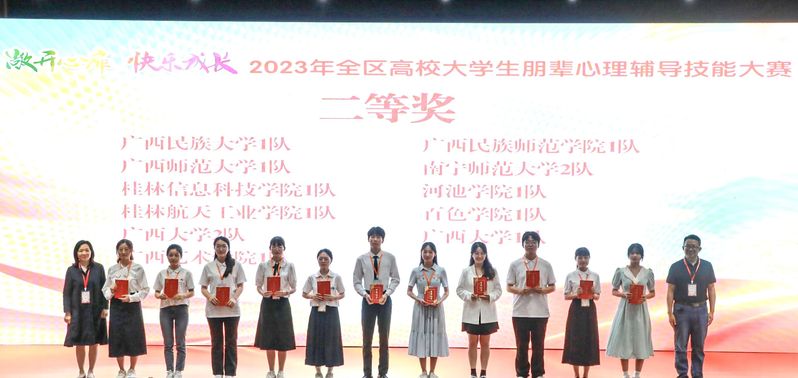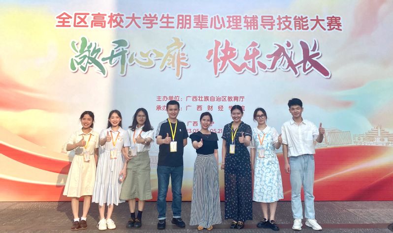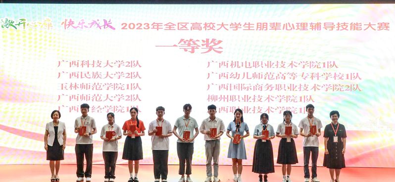 近日,由自治区教育厅主办,广西财经学院承办的全区高校大学生朋辈心理辅导技能大赛在南宁落下帷幕,我校选派的两支参赛队伍在大赛中获得佳绩,分别获得一等奖、二等奖。