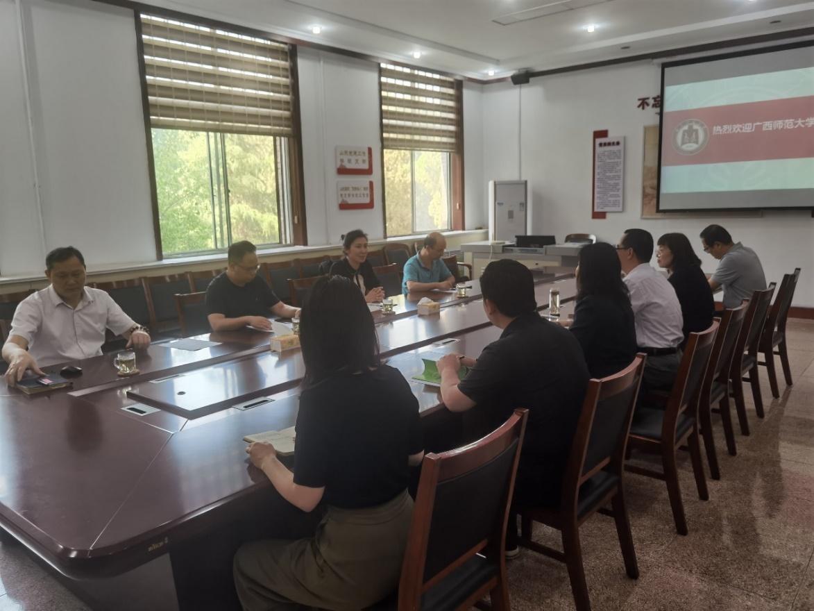 座谈会上,曲阜师范大学生命科学学院王仁君院长对广西师范大学生命科学学院一行来访表示热烈欢迎,接着围绕学院组织机构、专业设置、人才培养、党建工作、学团工作、科研与学科建设等方面进行介绍。我院党委主要负责人对曲阜师范大学生命科学学院热情接待表示感谢,分管研究生工作负责人介绍了教学科研平台、科学研究、学生培养、就业情况、社会服务等学院概况。