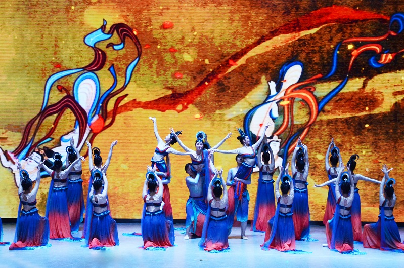 演出在群舞《一条大河》中拉开帷幕,舞蹈演员们通过安徽花鼓灯的形式演绎着新时代中华儿女亘古不变的家国情怀。作品《碇步桥水清悠悠》《爱莲说》《姥姥的田》《敦煌飞天》以生动婀娜的舞姿演绎出蕴藏着的民族韵味与中华诗情。《红色娘子军》《红玉丹心》《红色之恋》《我等你》《出征》等节目赞扬了中华英雄儿女的民族气概和不畏艰险、英勇顽强的革命英雄主义和革命乐观主义精神。演出在群舞《在路上》的激情演绎下,逐渐进入尾声,作品展现出蒙古族人民对追求美好生活的勇气和热忱,给现场观众带来了一次次的震撼和一幕幕的感动。