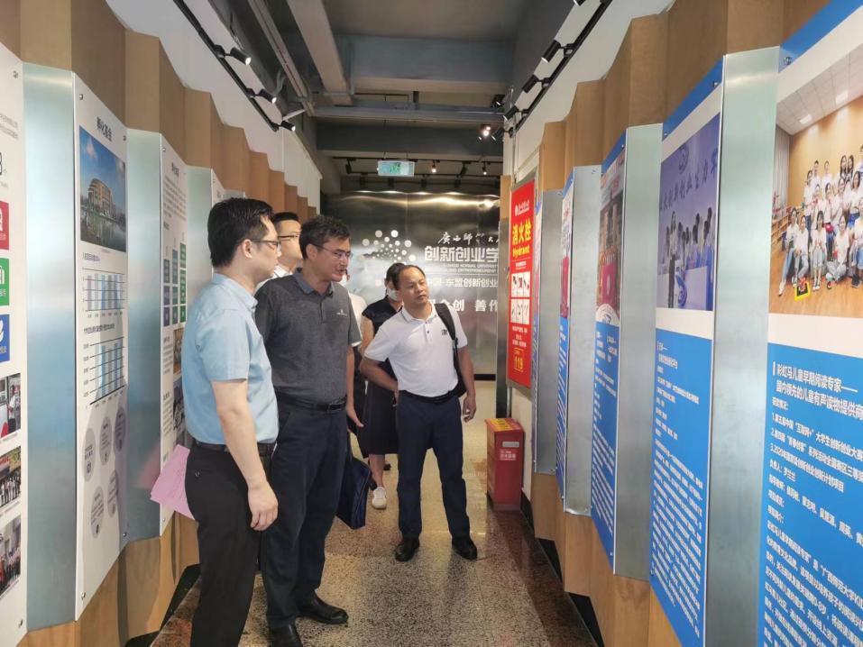会前,调研组还走访了学校创客中心、创新创业智慧教室和双创文化宣传展区,对学校校在大学生创新创业能力提升方面做工作高度赞扬。双方表示这次交流互动有收获,并将在今后结合创新创业相关课题研究加强联动,共同推进广西创新创业教育事业高质量发展发展。