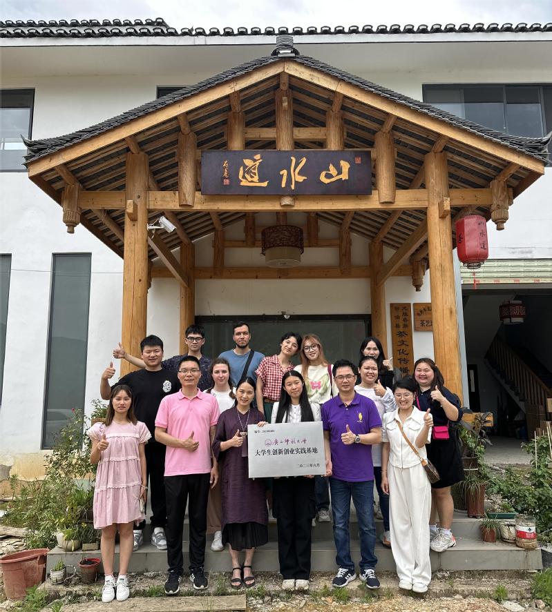 为持续深化我校创新创业教育改革,进一步支持大学生开展创新创业实践,6月12日,我校大学生创新创业实践基地授牌仪式在桂林市龙胜各族自治县桂林山水道茶业有限责任公司(以下简称“山水道”)举行,山水道公司董事长李依宸、我校创新创业学院负责人、国际文化教育学院国际合作与交流相关负责人、创新创业学院实践部负责人,以及来自越南、印度尼西亚、泰国、俄罗斯、塔吉克斯坦近10名留学生参与了本次挂牌仪式。