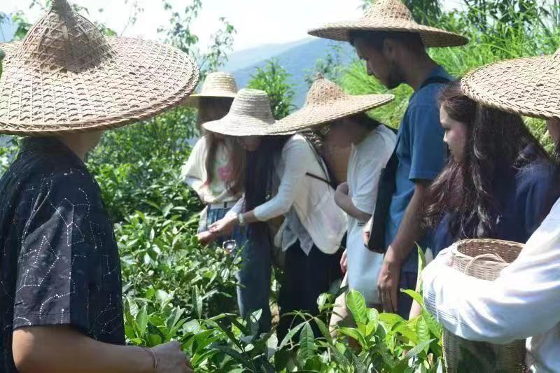 挂牌仪式前,山水道公司相关负责人带领留学生参观公司茶文化馆及制茶工厂,并带领留学生前往茶园体验了采茶过程。随后,校企双方就大学生创新创业实践基地开展及建设进行了深入讨论。