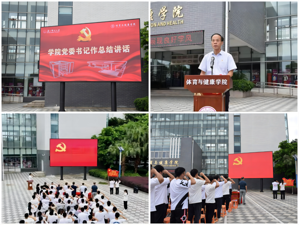 为深入学习贯彻习近平新时代中国特色社会主义思想和党的二十大精神,扎实推进“五基三化”提升年行动走深走实,2023年6月30日,体育与健康学院党委在雁山校区召开庆祝中国共产党成立102周年活动,共同回顾党的光辉历程,传承党的优良传统,激励广大党员和全院师生从身边榜样模范中汲取奋进力量。