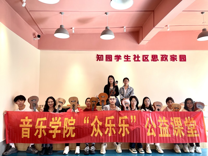 为进一步推进高雅艺术进校园,促进学校美育的普及开展,搭建一个集美育推广、艺术实践、文化交流于一体的综合性公益平台,音乐学院于本学期开设了“众乐乐”思政美育公益课堂,面向全校师生,组织开展吉他、尤克里里、葫芦丝、舞蹈等公益文化活动50余场,以专业优势助力校园美育育人工作。