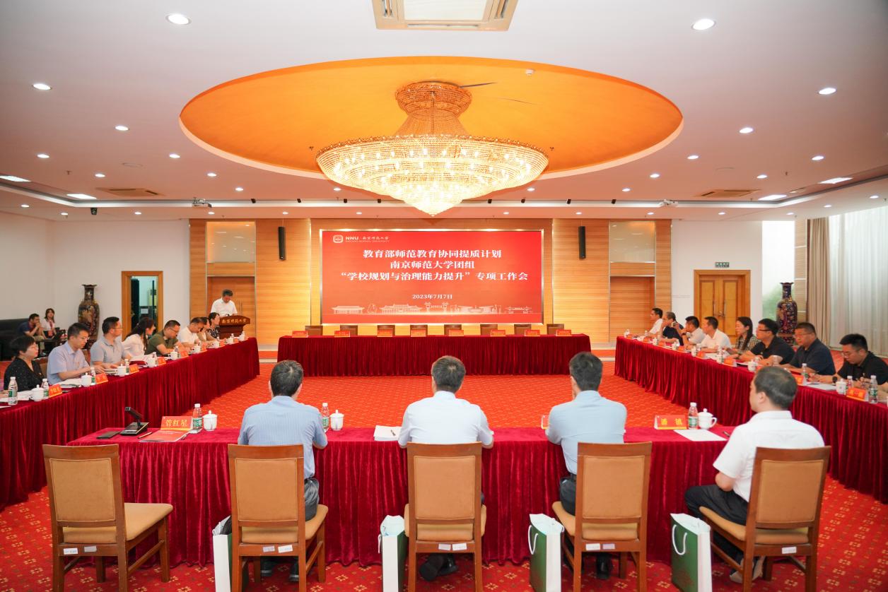 7月7日至8日,教育部师范教育协同提质计划南京师范大学团组“学校规划与治理能力提升”专项工作会在南京师范大学举行,我校发规处受邀参加会议。江苏省教育厅政策法规处处长王兵,南京师范大学党委常委、副校长张连红出席会议并致辞,团组高校发展规划部门相关人员出席会议。