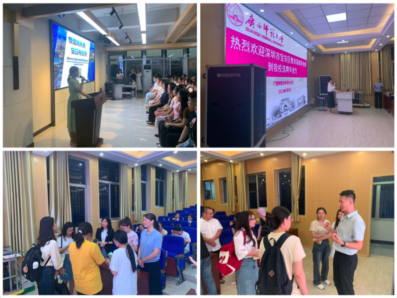 深圳市宝安区教育局的老师介绍到:广西师大的学生给我留下了非常深刻的印象,就业积极性很强烈,早早便来到现场了解,宣讲结束之后主动跟老师们咨询问题,我们希望更多毕业生来到宝安区扎根教育事业。来自外国语学院的覃同学表示:想不到开学第一天就有单位进校,深圳作为一线城市,是一座充满魅力、活力、动力的城市,今天宣讲更加了解大城市教育情况,感谢学校在我们毕业之际提供如何好的就业单位。大三的时候我们就完成了教育实习,也上了就业指导课知道如何制作简历,今天跟老师交谈过程很顺利,老师也鼓励我们抓住秋季求职“黄金期”,也为我接下来求职带来了更大的信心支持。