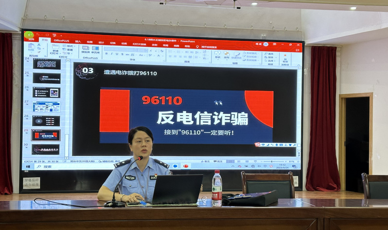 专题讲座中,辖区公安民警结合自身办案经历和大学生特点,从什么是电信网络诈骗、电信网络诈骗的类型及如何防范等方面出发。列举大量真实案例,向同学们讲解刷单返利、虚假征信、网络游戏产品虚假交易、婚恋交友等十大诈骗类型,深入剖析常见诈骗手段和上当受骗的主客观原因,帮助学生掌握预防网络电信诈骗“事前、事中、事后”处理技巧和补救措施,有效提高师生识诈反诈能力。