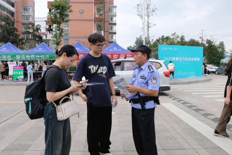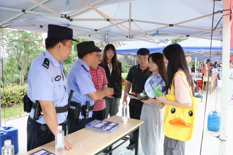 新生军训场上,武装部/保卫处联合辖区公安机关组建防范校园电信网络诈骗宣传团队,主动深入广大师生,利用新生军训间隙,开展面对面反诈宣传活动,为学生们上好“反诈必修课”。活动现场,辖区公安民警以案说法,以学生喜闻乐见的方式深入浅出讲述常见电信网络诈骗类型及防范技巧;以军训连队为单位一对一宣传辅导“国家反诈中心”APP安装激活,引导师生充分注重个人信息保护,提升网络信息甄别和风险应对能力。