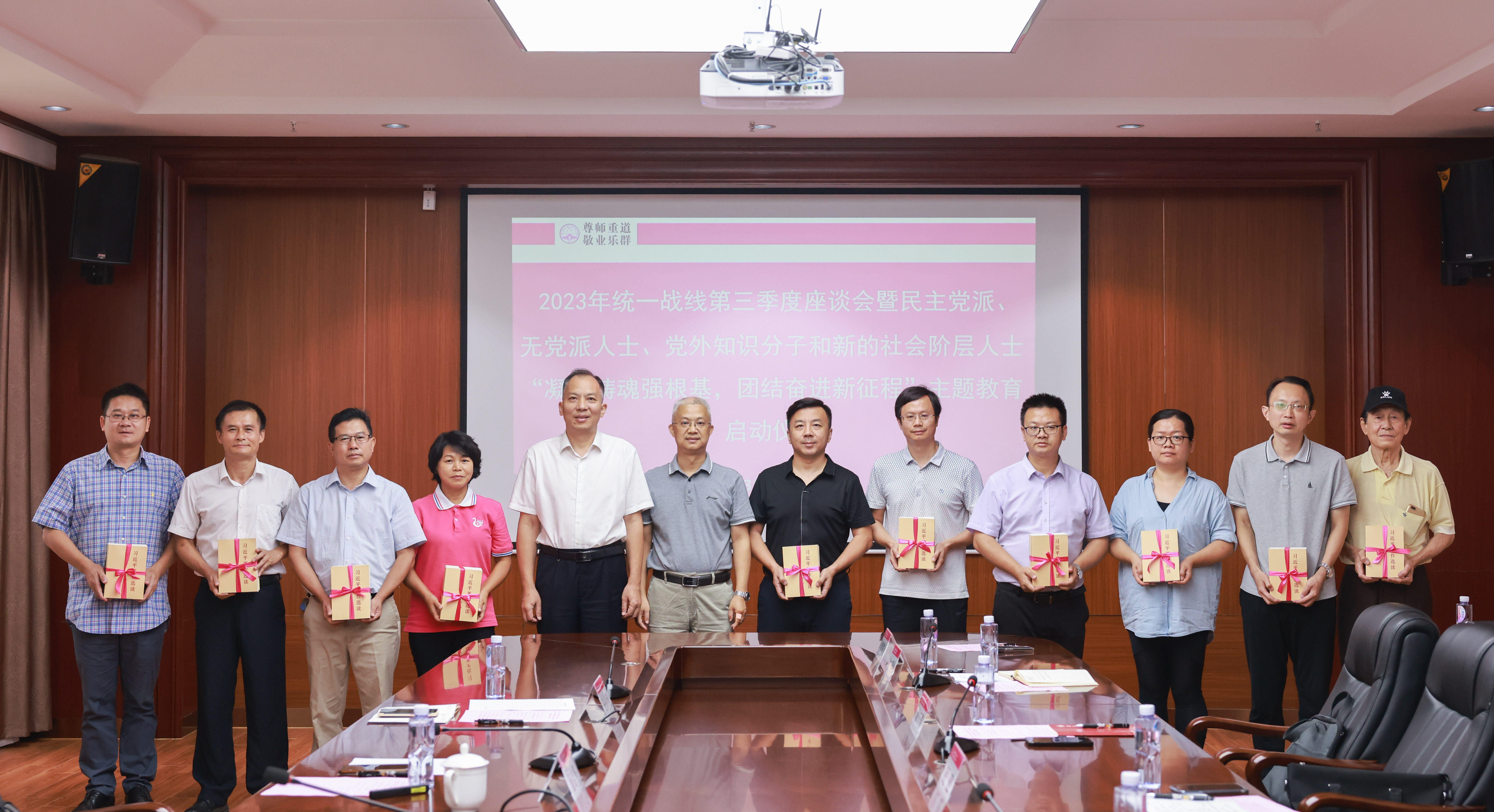 为贯彻落实《中国共产党统一战线工作条例》和有关文件精神,进一步密切党员领导干部同党外代表人士的联系,积极营造宽松稳定、团结和谐的良好氛围,2023年9月19日下午,我校组织各民主党派、统战团体负责人以“凝心铸魂强根基,团结奋进新征程”为主题,召开统一战线第三季度座谈会。校党委副书记旷永青,校党委常委、副校长汤志华参加会议并与各民主党派、统战团体负责人深入交流。