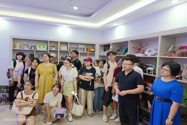 当天上午,广西师范大学附属中学李玉华老师带领2021级科学教育师范生到广西师范大学附属中学综合楼参观中学生们的创新实验课程作品展。中学生们的纸雕灯、电动抛石机、足型机器人、创意电子乐器、基于3D打印的古代建筑等项目课程的作品让各位科学教育师范生深受感触。师范生们认真参观交流,纷纷拍照并赞叹道:“师大附中的学生真幸福,真厉害,他们现在所接触到的是我大学才接触达到的。”随后,李玉华老师带领我们到创客空间115教室给我们带来了生动的创新实验课程,同学们认真观察和思考,详细做好记录。