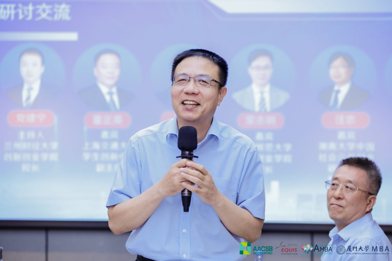 中国高等教育学会创新创业教育分会理事长、上海财经大学常务副校长徐飞、国务院参事、友成企业家乡村发展基金会副理事长汤敏、中国高等教育学会创新创业分会副理事长、沈阳师范大学副校长刘铸、中国高等教育学会创新创业分会副秘书长、广西师范大学创新创业学院院长蒙志明、湖南大学中国社会公益创业研究中心执行主任汪忠、深圳市社创星社会企业发展促进中心理事长夏璇、银河证券首席经济学家、湖北银行独立董事左晓蕾出席了本次论坛。中国高等教育学会创新创业教育分会监事、陕西省高校思想政治教育研究会副秘书长、长安大学党委副书记黎开谊代表分会进行论坛致辞。上海交通大学学生创新中心(创业学院)董正英主持本次论坛,中国高等教育学会创新创业分会副秘书长、兰州财经大学创新创业学院院长党建宁主持交流研讨环节。
