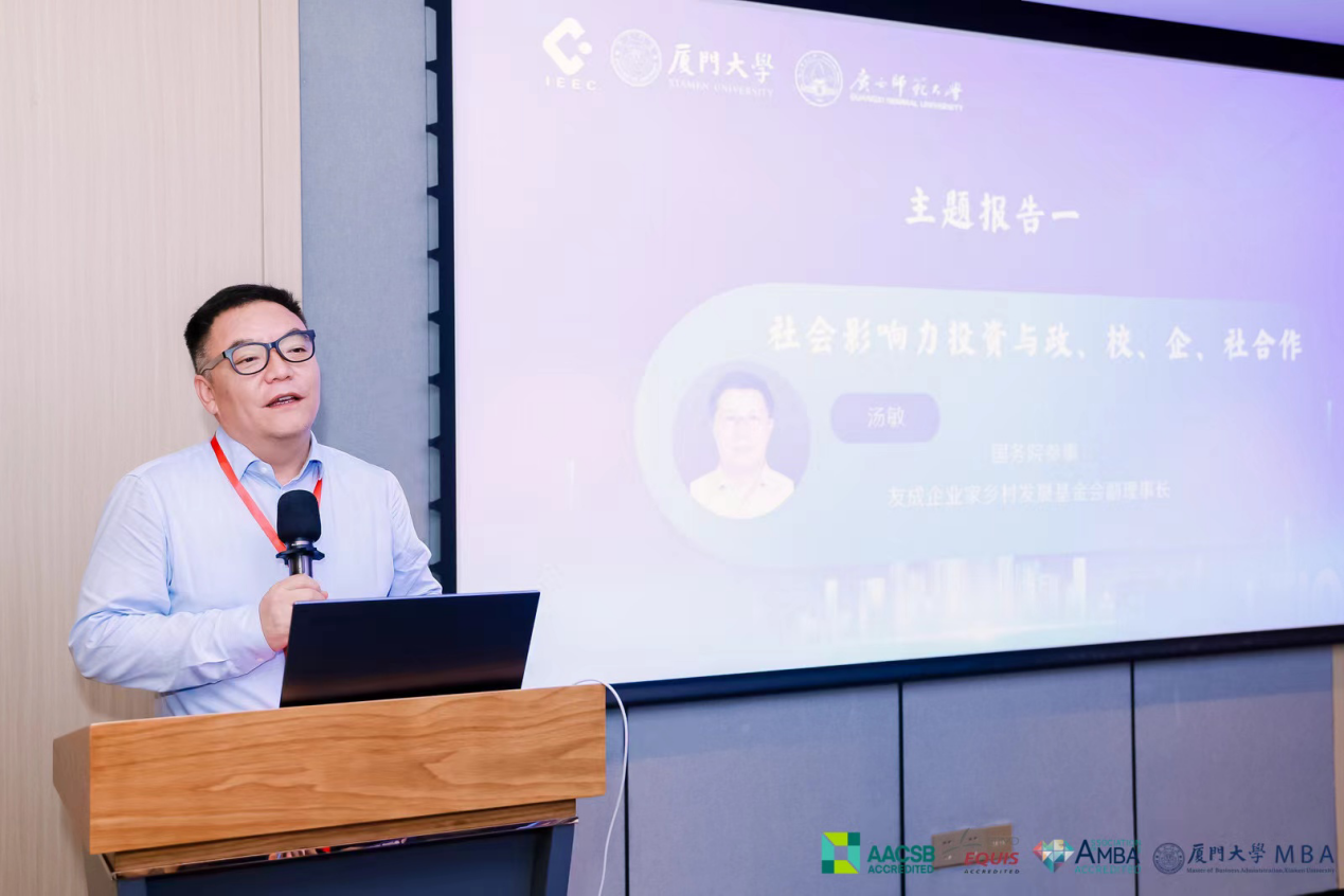 国务院参事、友成企业家乡村发展基金会副理事长汤敏作了“社会影响力投资与政、校、企、社合作”的主旨报告分享。他指出在,长期从事宏观经济研究工作中认识到了社会公益对经济发展的促进作用。其中,友成基金会一直从事社会影响力投资,其目的在为企业的财务回报同时对社会和治理表现以期在投资过程推动可持续发展和社会公平等作用,并通过设计“助力乡村青年创业资源包”“助力乡村教育资源包”和“乡村医疗资源包”等全新的方式来助力社会创业和乡村振兴。