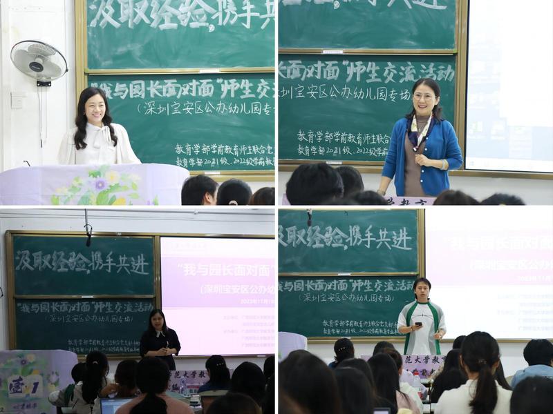 为深化与深圳市宝安区教育局的校地合作,提升在校大学生的专业认同感,做好就业导向的的人才培养工作,11月10日,教育学部联合深圳市宝安区教育局幼儿教育管理中心举办“我与园长面对面”师生交流会。深圳市宝安区教育局幼儿教育管理中心相关负责人、6所公办幼儿园园长和教育学部党委学生工作负责人、学前教育专业的在校研究生与2021级、2022级本科生及特殊教育专业的相关学生100余人参与此次交流会。活动由学前教育学师生联合党支部、本科生第二党支部、2021级学前教育专业本科班、2022级学前教育专业本科班联合承办。