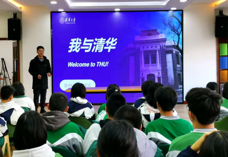 授牌仪式之前,李昱霖同学做了《我与清华》的讲座。为梦想跋山涉水,追风赶月,李昱霖同学通过自己的努力在今年高考中考上了向往的清华大学。他把自己在校学习的经验分享给学弟学妹们,希望他们也能在未来走进清华学堂。