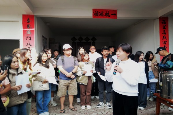 11月25日,广西师范大学国际学生、外籍教师和中外校际交流英语专业学生赴桂林市资源县中峰镇抱财丘乡村振兴示范点开展了别开生面的《中国文化概论》线下文化体验课。《中国文化概论》是广西师范大学课程思政示范项目,教学宗旨是让国际学生了解中国优秀传统文化与当代社会面貌。本次线下文化体验课是以《中国文化概论》课程“中国人的生活”为主题,从“体验桂林油茶”的角度走进桂林美丽乡村,了解中国乡村振兴战略的成果,了解新时期中国农民的生活面貌。