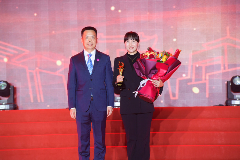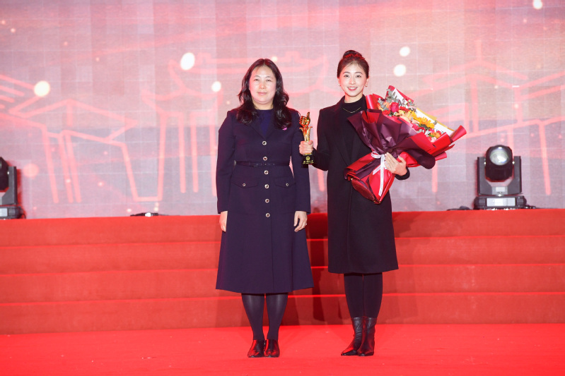 校党委常委、副校长黄晓昀为音乐学院教师唐雯颁奖
