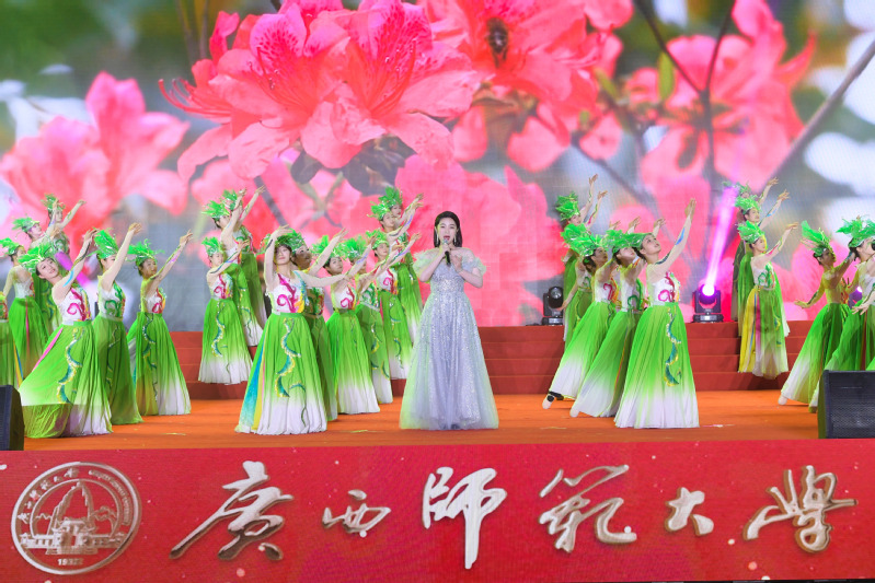 颁奖典礼还进行了形式多样、精彩纷呈的表演。活动汇聚了由师生精心编排的优秀文艺节目,这些节目通过歌曲、舞蹈、器乐演奏、情景朗诵等丰富的艺术形式,展现了广西师大人朝气蓬勃、昂扬向上的精神风貌。