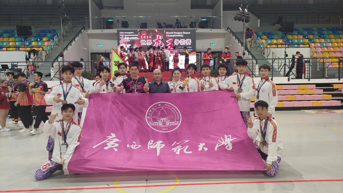 据悉,我校长期坚持发展舞龙舞狮项目,舞龙舞狮项目先后在国内外比赛中荣获佳绩,龙狮研究也卓有成效,2015年成立中国-东盟龙狮文化研究基地,2019年成为广西学校体育卫生艺术学会龙狮分会主席单位,2021年成为中国大学生体育协会舞龙舞狮分会主席单位。广西师范大学龙狮队秉承“立足广西,面向全国,走向世界”的发展理念,坚定传承与发扬舞龙舞狮文化,不仅为学校推动中华优秀传统文化传承注入了新鲜血液,也为学校体育事业发展做出了积极贡献。