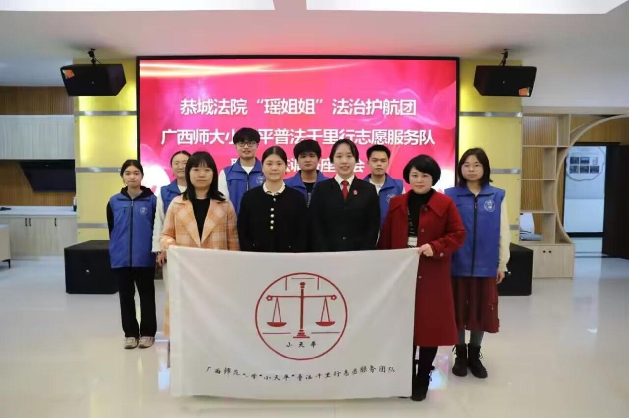 为深入学习宣传贯彻党的二十大精神,了解地区法治建设状况,开展法治宣传教育,增强全民法治观念,促进少数民族乡村地区法治化进程。2月18日至2月23日,广西师范大学法学院“小天平”普法千里行实践团队赴广西桂林市恭城瑶族自治县,与法院、检察院、团县委和妇联等相关单位联合开展社会实践活动。
