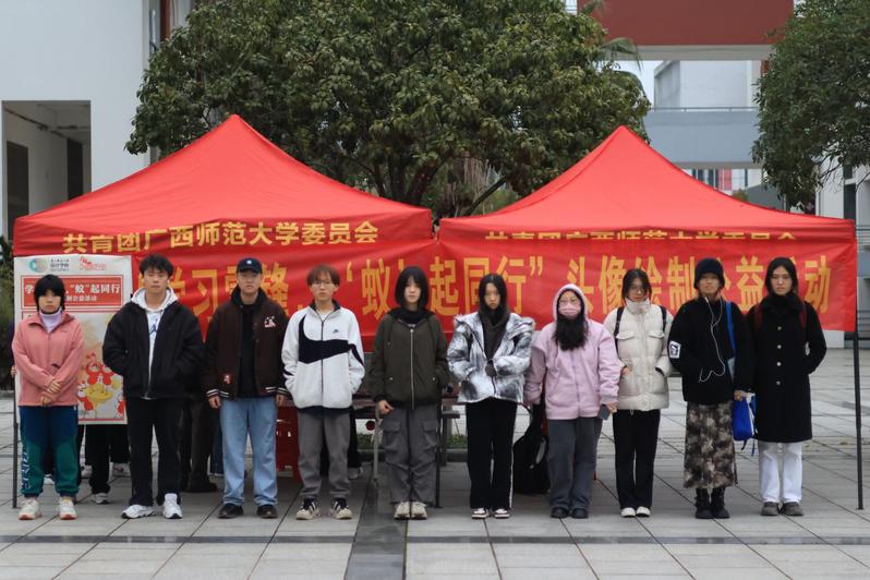 设计学院小蚂蚁行动志愿者团队于3月5日在雁山孔子广场开展了“学习雷锋,‘蚁’起同行”头像绘制公益活动。