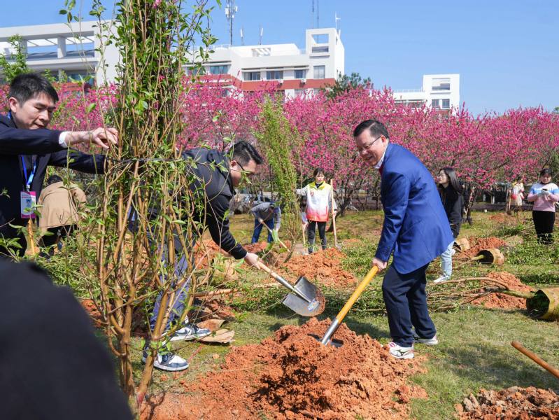 春风拂绿,草木生发。3月12日,正值全国第46个植树节,我校在雁山校区桃林开展“同心共绘师大绿美画卷,携手奋进助力教育强区”主题植树活动。校党委书记贺祖斌、校长孙杰远、校党委副书记旷永青带领学校各民主党派、统战团体负责人,台湾教师,中外师生代表以及机关各党支部书记、机关各职能部门主要负责人、后勤保障处/后勤服务集团主要负责人等80余人参加植树活动。