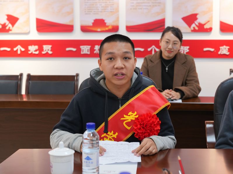 职业技术师范学院2023级电子商务专业梁桂强代表入伍新兵发言,表示将不负携笔从戎、保家卫国的神圣使命,严格以军人的标准要求自己,锻炼身体,磨炼意志,努力为保卫祖国、服务人民贡献应有力量。